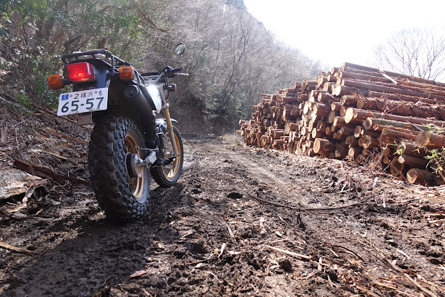 いつものごとく写真では伝わりませんが一歩間違えればバイクぶん投げる感じの勾配です。